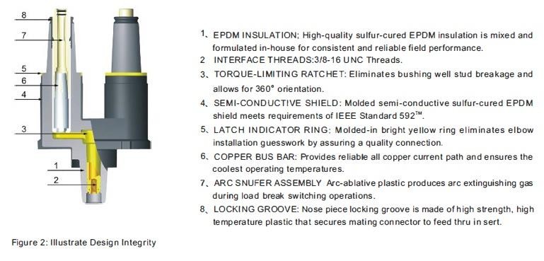 ຊ່ອງສຽບນີ້ເຮັດວຽກກັບ 200A loadbreak elbow connectors, elbow surge arresters, ແລະ bushing ອຸປະກອນທີ່ມີລະດັບແຮງດັນດຽວກັນ.